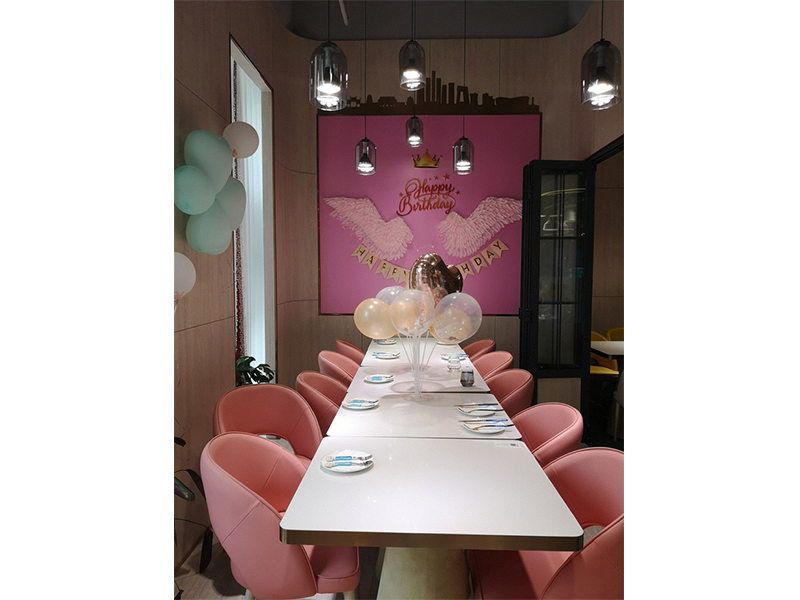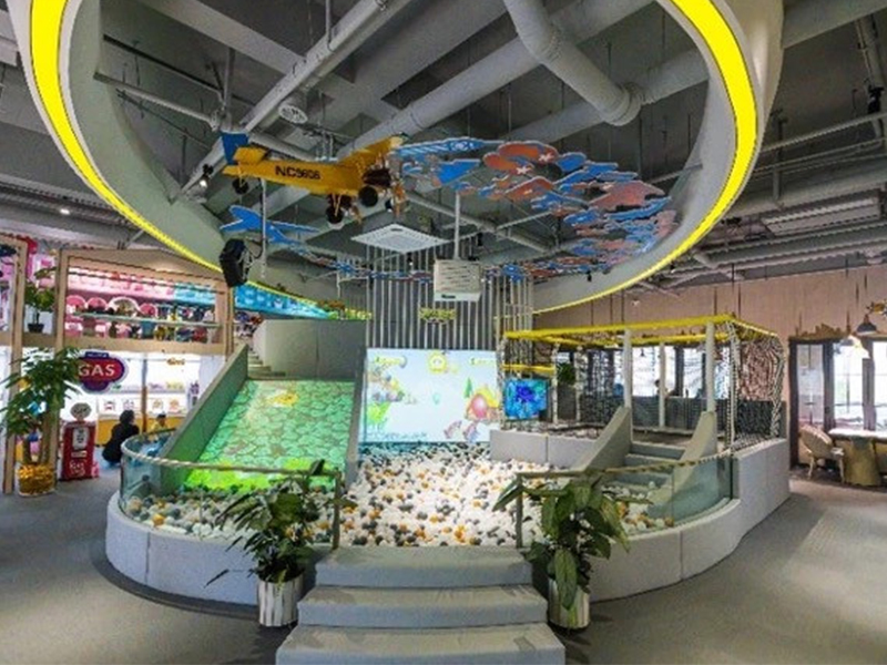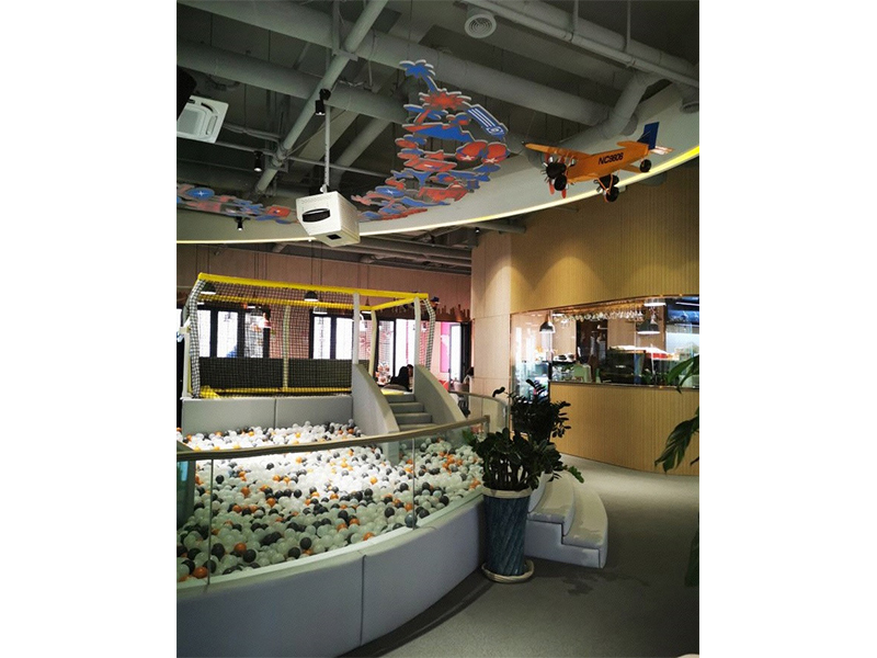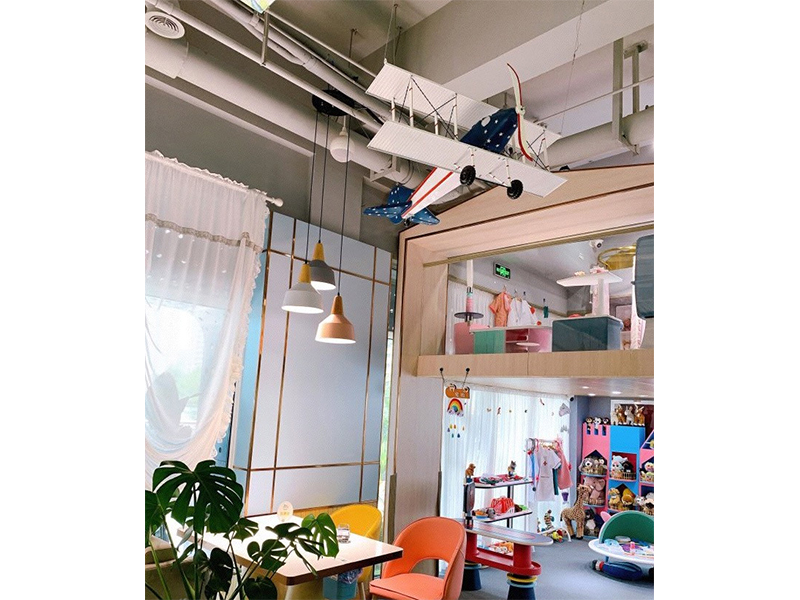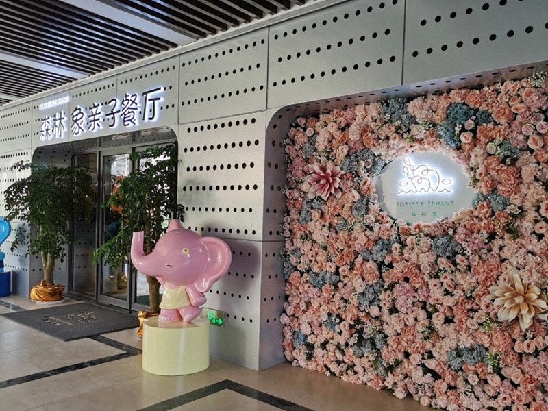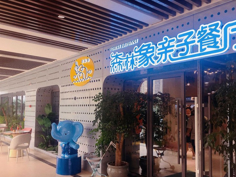 設計理念: 濟南森林象親子餐廳裝修施工完成效果圖以自然、溫馨為主題,門口有兩只小象在歡迎孩子們的到來,整個室內以自然色彩為主色調,里面還有一個小型的游樂場,能讓孩子們歡快的游玩。餐廳的墻上以卡通動漫為壁紙,激發孩子們的童真興趣。除此之外還有休息的地方,可以讓孩子們在童年的海洋里面暢游,在休息區還會有動畫片和玩具供孩子們游玩,餐廳的盤子、調味料盤瓶等一些也融合了卡通元素。